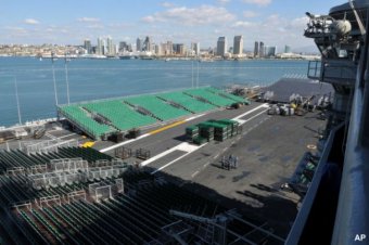 Michigan State and North Carolina will pay tribute to the military by playing a basketball game on an aircraft carrier on Veteran's Day in San Diego. The two teams will don camouflage jerseys with U.S.A. on the back of them, and President Obama and thousands of military personnel will be in the audience. If it's sunny out, the game will take place on the flight deck. If not, it will move a level below into the air plane hangar.